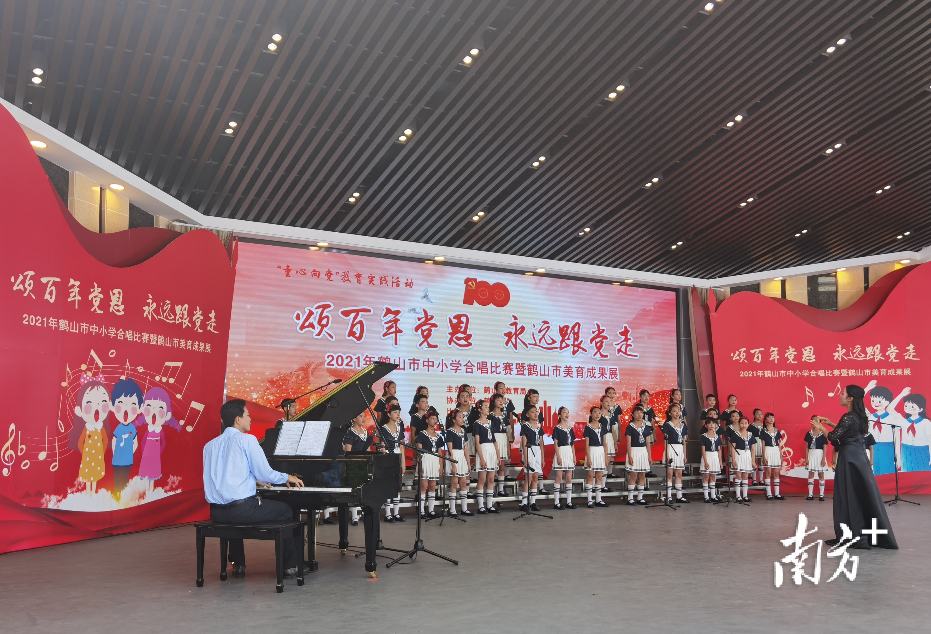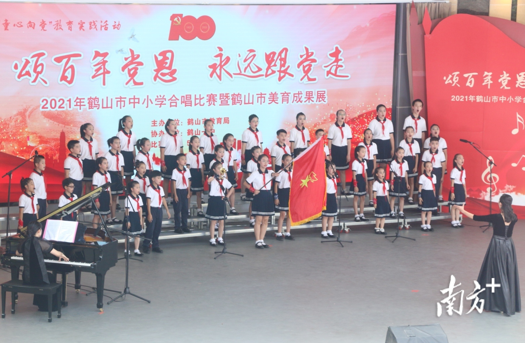 “唱支山歌给党听,我把党来比母亲……”5月7日,鹤山市举办“颂百年党恩 永远跟党走”中小学生合唱比赛暨美育成果展,来自全市35所中小学校的合唱队同台竞技,展现新时代主人翁的精神风采,用最动听的歌声庆祝建党一百周年。