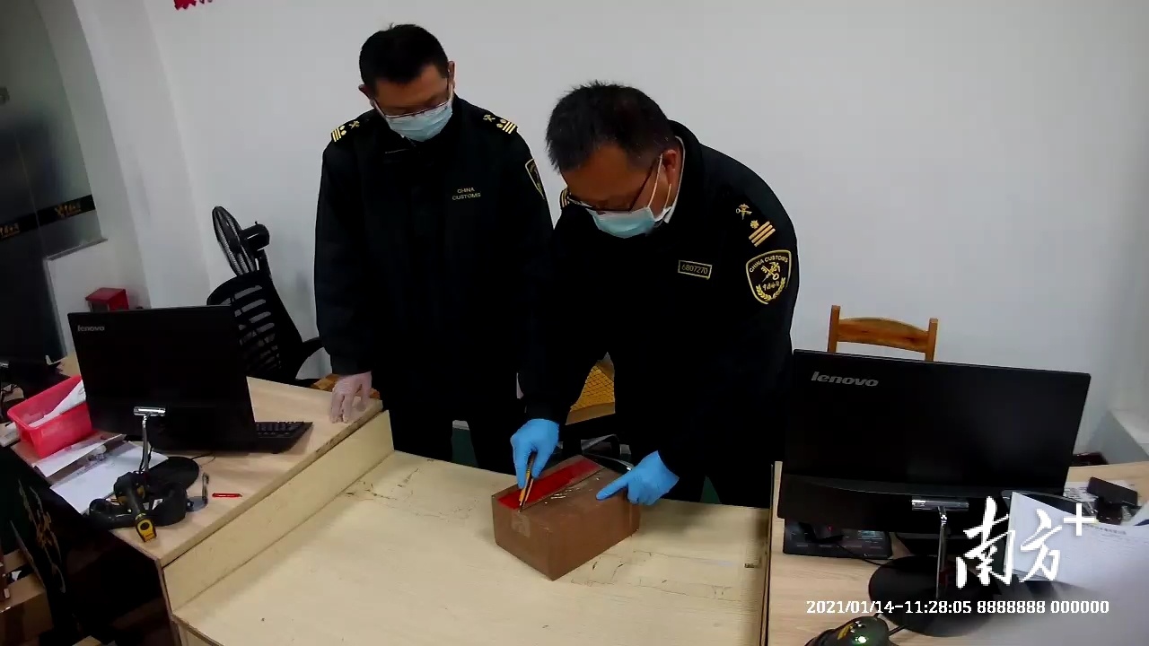 现场查验关员在审图过程中发现,申报品名为“精油”的包裹在通过X光机时图像显示异常,随即进行即决式布控。经开箱查验,关员发现包裹中藏有电子烟弹9支,净重116克。关员利用大麻检测试剂对从电子烟弹中提取的烟油进行初步毒品检验,呈阳性反应。技术部门鉴定确认为大麻油,并移交江门海关缉私局侦办。