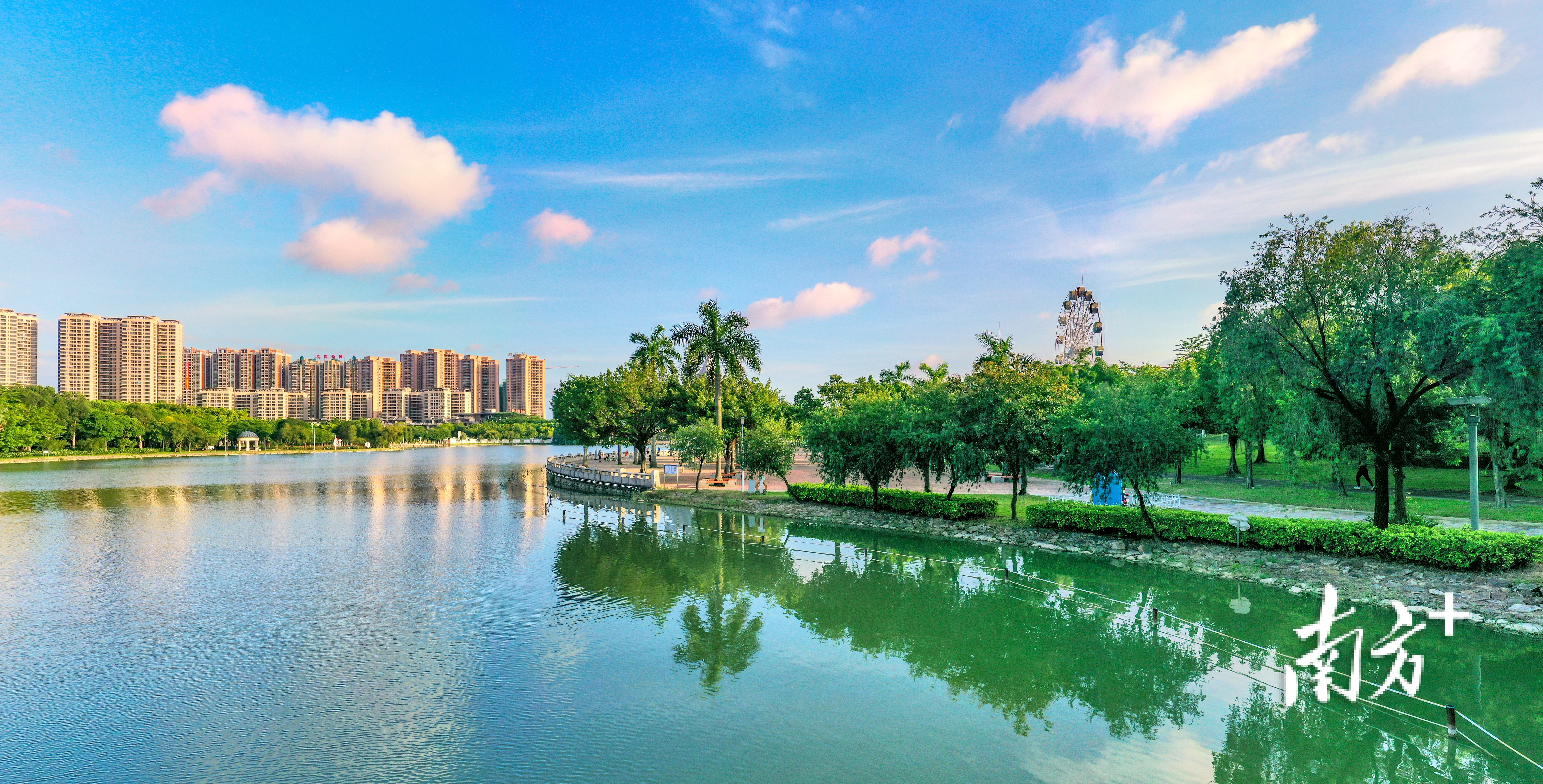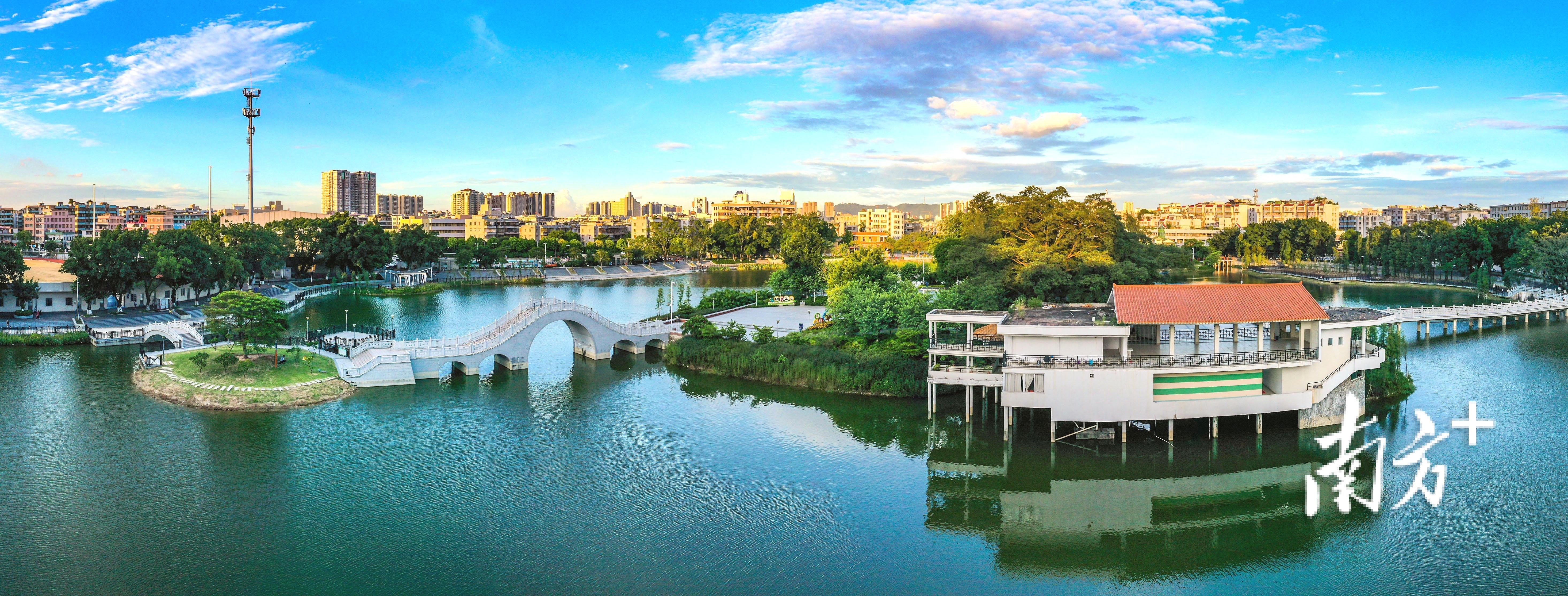 清晨,鹤山北湖公园慢慢苏醒。