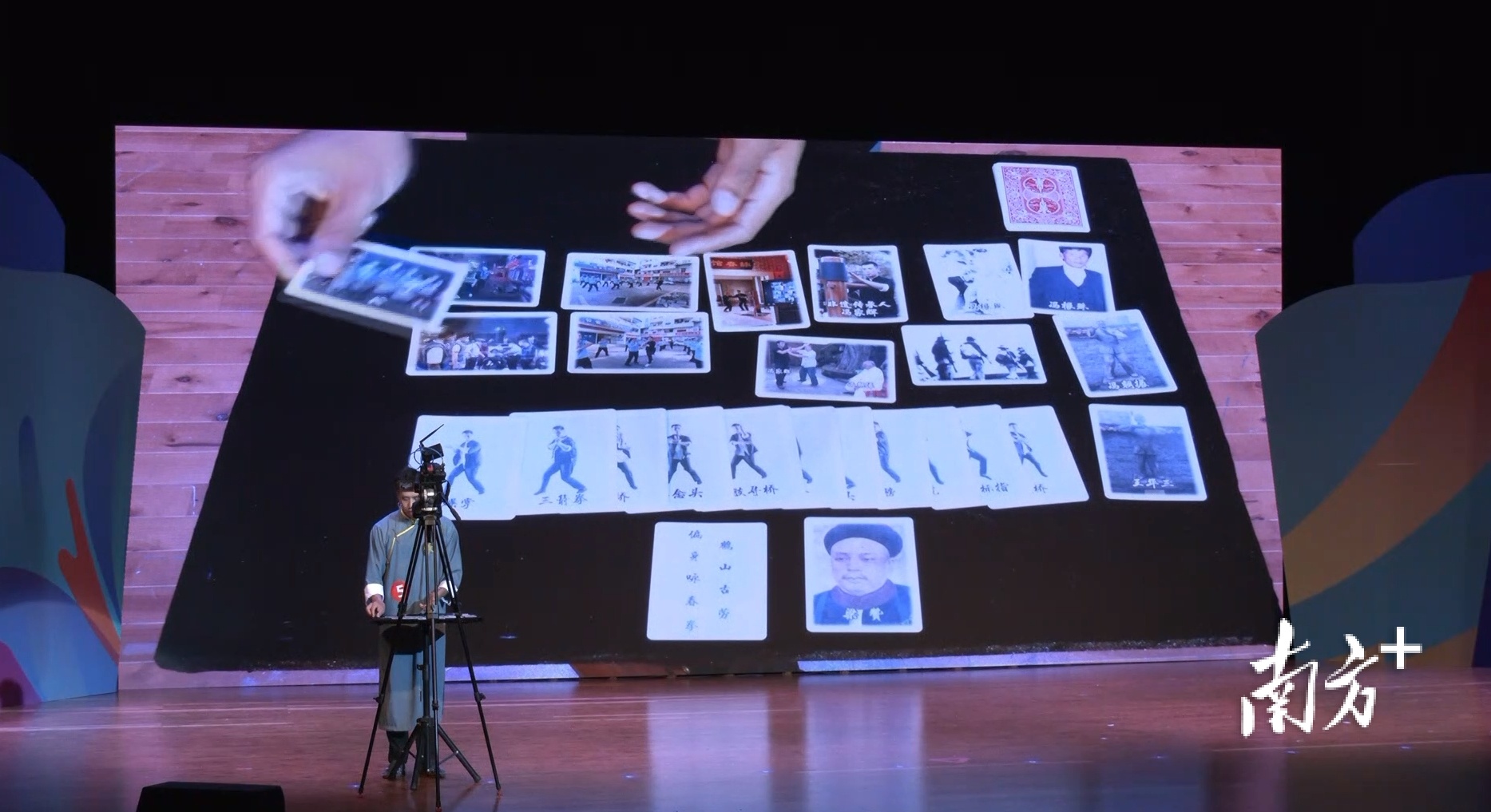 欧阳达昌用魔术扑克牌展示古劳咏春魅力。图片截取自江门市广播电视台微信视频号