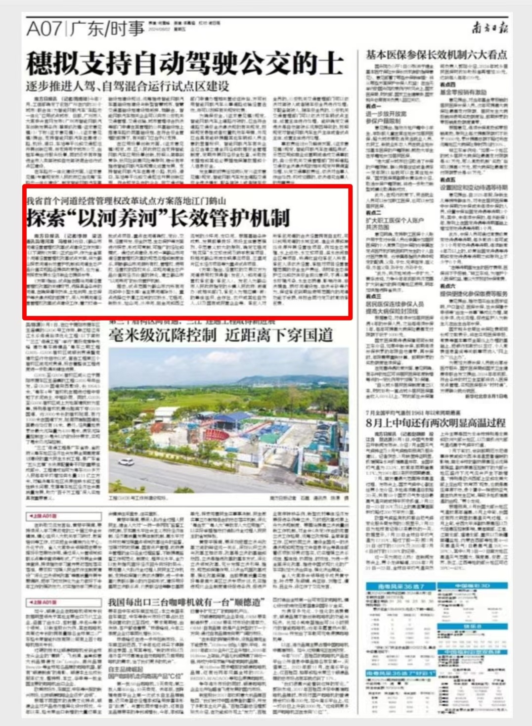 7月31日,南方+记者从江门市水利局获悉,《鹤山市河道经营管理权改革试点建设工作方案》(以下简称《方案》)正式出炉,为鹤山探索河道长效管护机制和河道生态产品价值实现路径提供政策指引,也为省、市探索发展水经济新业态提供参考。