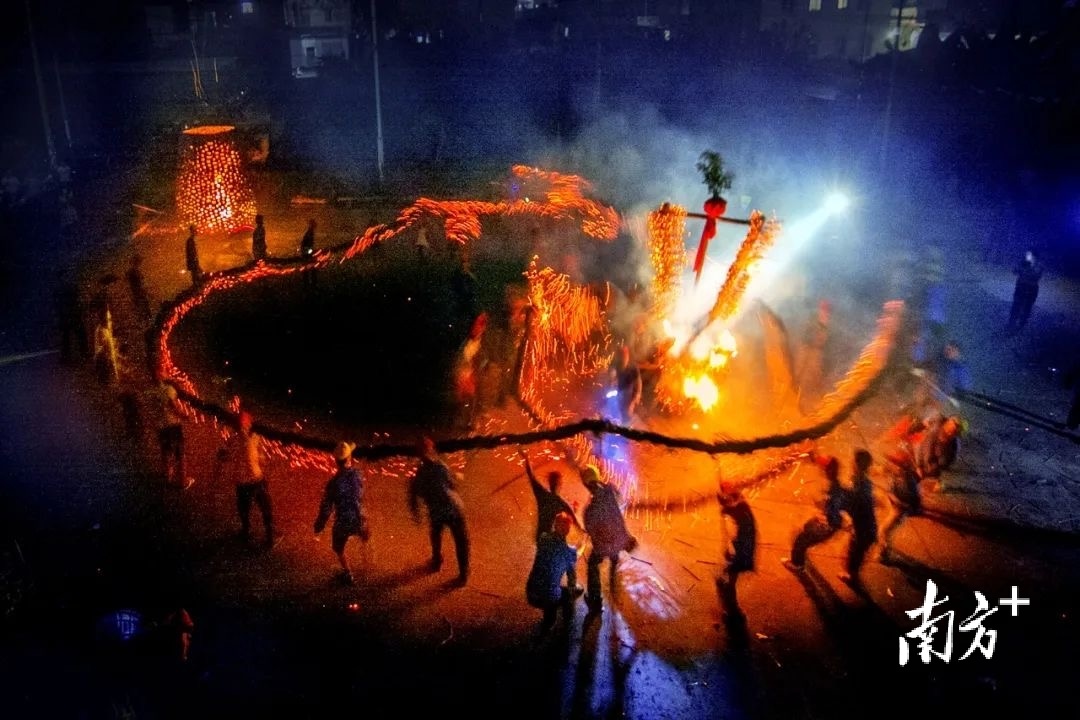 舞火龙此期间,还会有烟花助兴,加上观者如织,人声鼎沸,整个过程热闹非凡,场面蔚为壮观。