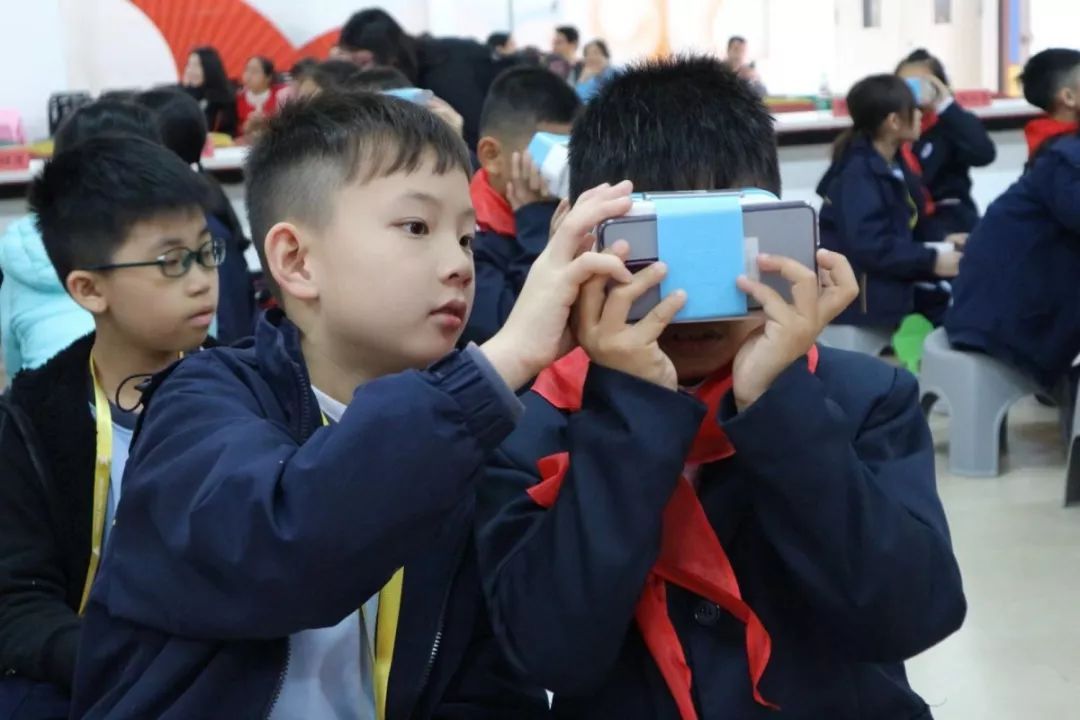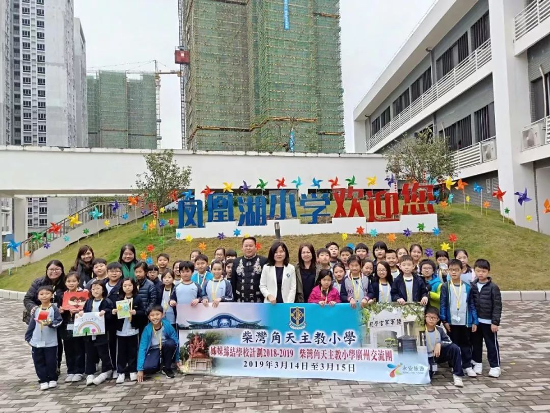 与此同时,我校为40名香港柴湾角天主教小学的学生做了特别的安排:40名来自凤凰湖小学一至六年级的学生代表与他们进行了一对一的联谊活动——我校的谭雅婷老师带领着80名同学开始了一场“律动之旅”,小活动很快消除了两地学生之间的陌生感,孩子们携起手来玩得不亦乐乎。随后,香港的同学们拿出他们的法宝——自己设计的VR视频给我校的学生们分享,介绍了香港的著名景点及柴湾角小学的历史。接下来,孩子们互赠了自己亲手准备的小礼物,又一起品尝了由我校家委赞助的茶点。一节课时间下来,两地的学生就成了名副其实的好朋友。
