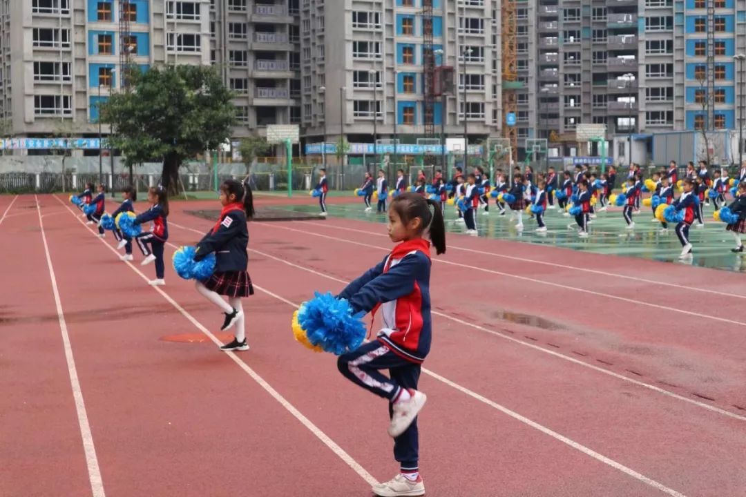 教育教学开放的另一个片段就是我校的体育大课间展示。同学们个个精神抖擞,步履轻盈,身姿优美,手持彩色花球的孩子们用自信活泼的啦啦操表演征得了来宾们的赞许。