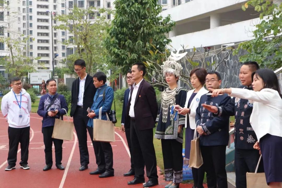 校园里春意满满,活动中友谊融融。我校本次开放日不仅面向家长朋友,同时也迎来了远道而来的贵宾——他们分别是由吕桂莲副校长带队的香港柴湾角天主教小学的师生代表和由莫胜语校长带队的贵州省三都水族自治县鹏城希望学校的行政班子。此次活动既体现了家校融合,也为三地学校提供了联谊交流的机会。