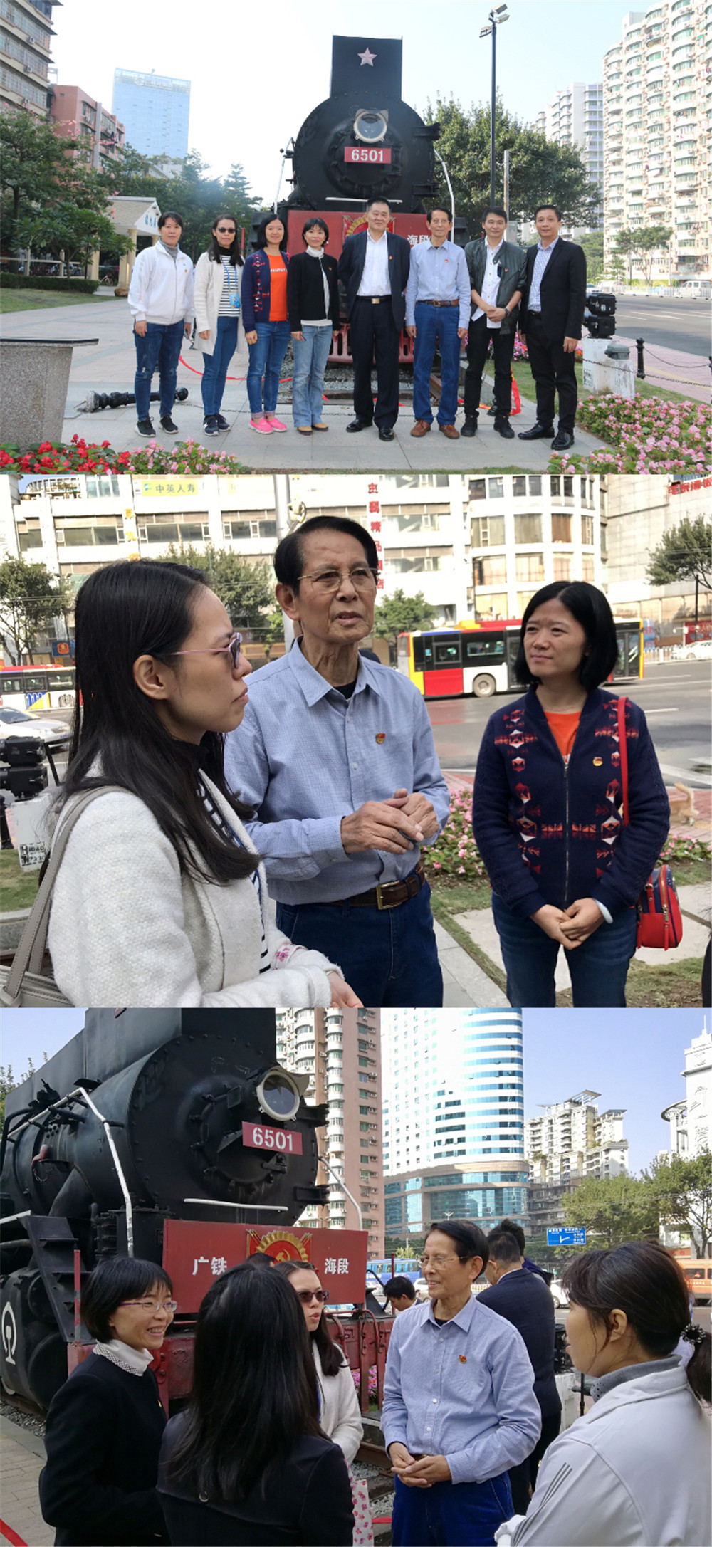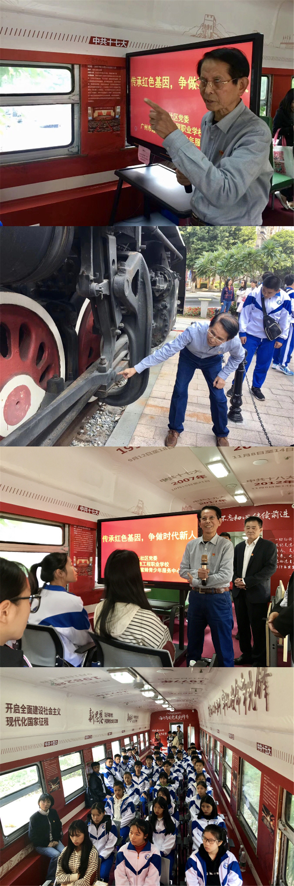 丘老从1947年开始参加铁路工作,亲证了广九火车站、广九铁路的建设与发展,他的深情讲述,让我们身临其境地感受到中国铁路建设发展的艰难曲折,正是一代代铁路人的艰苦奋斗,才成就了今天的中国高铁和“中国速度”;我们也深刻地体会到没有中国共产党就没有新中国,就没有今天国家的繁荣富强和老百姓的美好生活。听完这位年过花甲的老职业人的分享,同学们纷纷表示,更明白了“幸福都是奋斗出来的”,要学会感恩,更要继承和发扬老一辈的光荣传统,鞭策自己努力学习和实践,争当新时代的优秀职业人。党课结束后,参加活动的学生、老师还与丘老以及广九社区党委成员进行了多方面的交流与探讨。