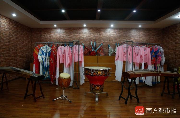 “粤剧是2009年被列入世界非物质文化遗产名录,而我们在这之前就推广粤剧进校园了,一成为非遗,我们是最早获得认定的基地。”李立骄傲地介绍说。连线地点就选在了学校里的红豆粤剧社,是一个120平方米的活动室,这里被装饰成传统的粤式建筑风格,一侧小舞台上放着古筝、定音鼓、高胡等乐器,其后挂着孩子们的戏服、各色靠旗和头饰,箱子上放着刀枪剑戟等木头道具。活动室另一侧放着钢琴、调音设备。每周一、周四下午,粤剧社的孩子们在这排练。