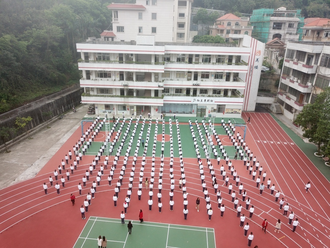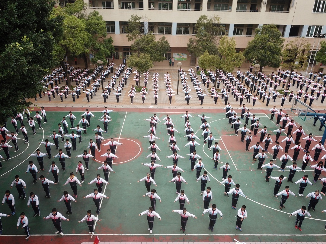 3月13日一大早,我校的操场上出现了几位拿着“长枪短炮”的陌生的面孔,原来他们是南方都市报的记者,今天来我校进行关于粤剧进校园的专访。八点整,出操的音乐响起,全体学生穿着整齐的校服胸前佩戴着红领巾,迈着坚定步伐踏入操场,今天要给记者们展示的是我校原创的粤剧身段操。几名记者,从航拍、近景拍摄、远景拍摄、单反拍照多角度拍摄了我校的粤剧身段操展示。