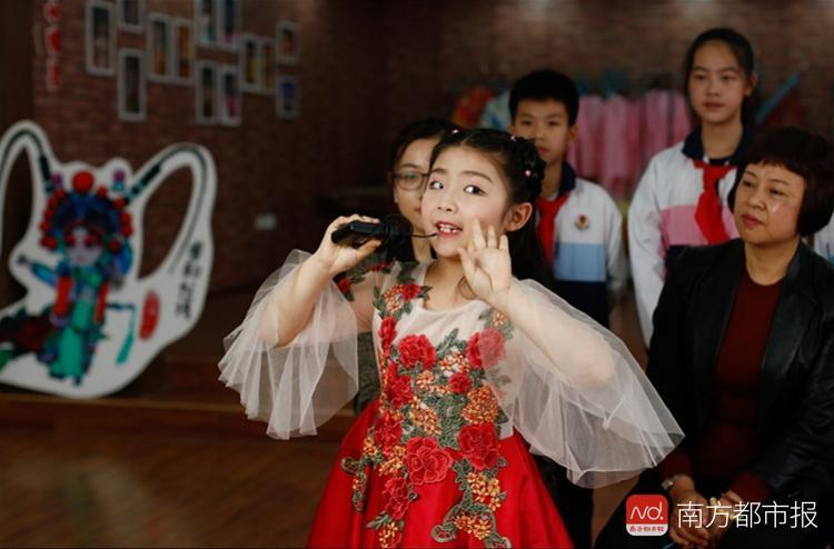 记者接着采访了粤剧精英班的学生代表——“我叫崔莺娘,身在平康里中,以诗酒供人使命……”六年级604班的陈俐锟笑起来有两个梨涡,话不多。然而穿上水袖,神情却与平日不同,上台表演的一段《崔莺娘》,顾盼生辉,已有了些小名伶的样子。