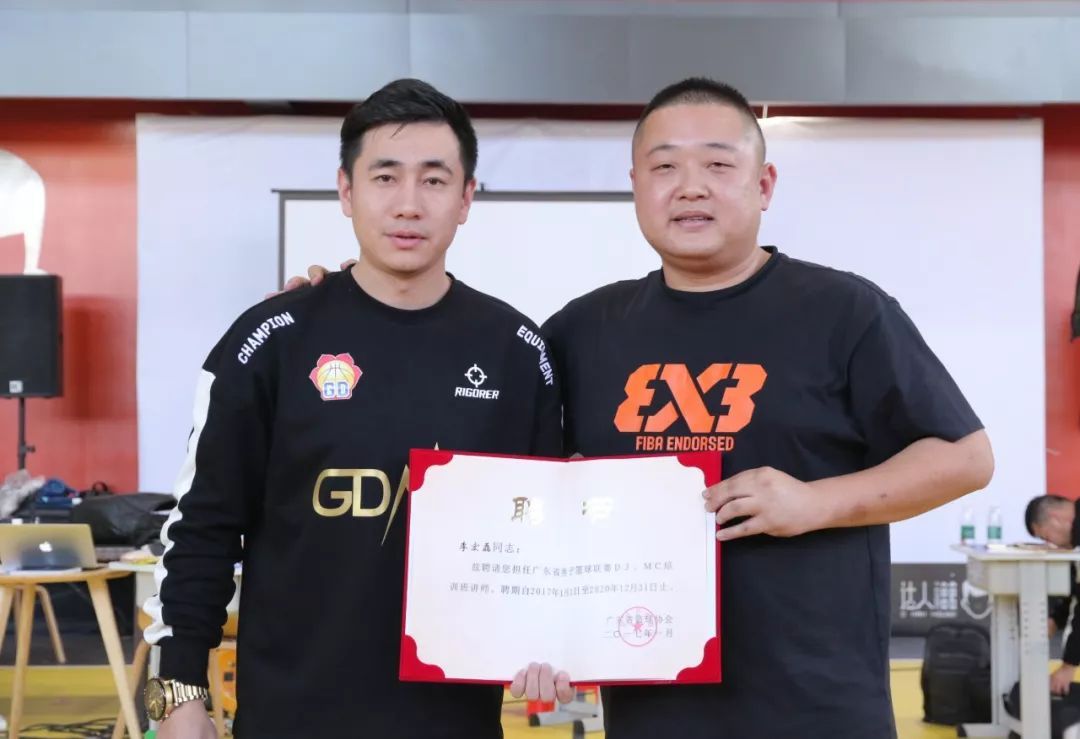 广东省篮球协会副秘书长曾光为李宏磊老师颁发聘书