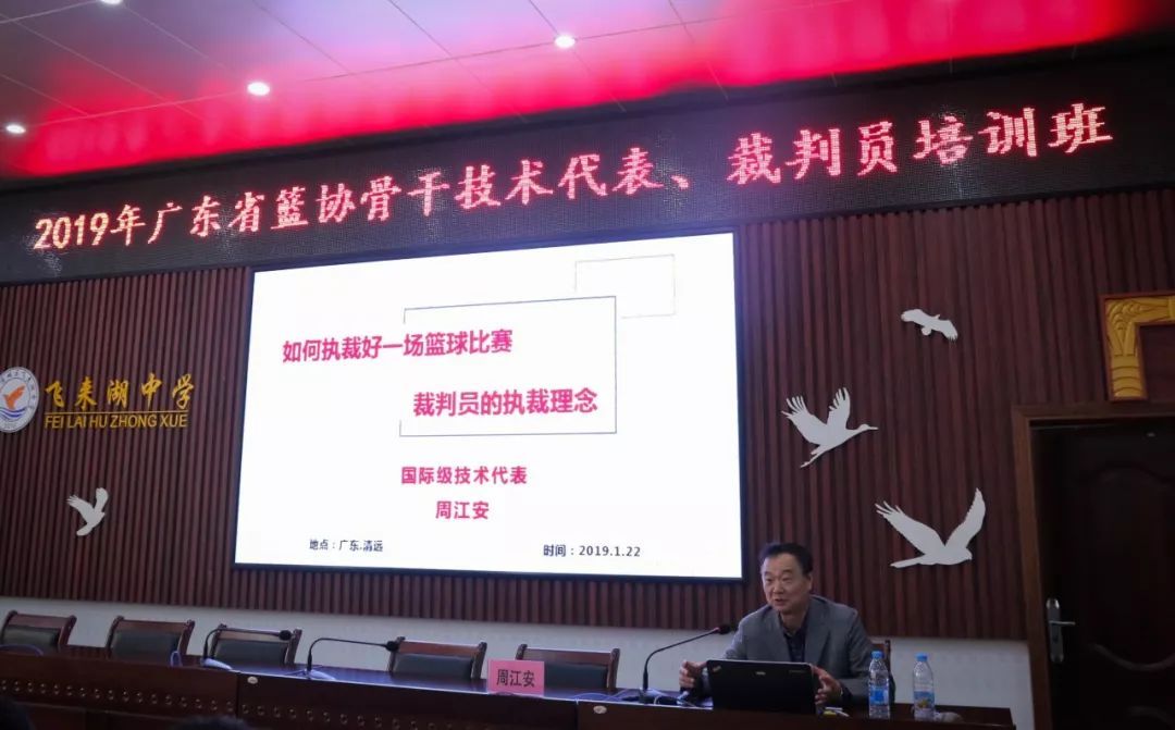 中国篮球协会裁委会常委、国际级技术代表周江安先生对广东省裁判队伍建设赞誉有加,并代表中国篮协裁委会对广东裁判队伍取得的成绩表示祝贺与鼓励,同时预祝本次培训班举办圆满成功。