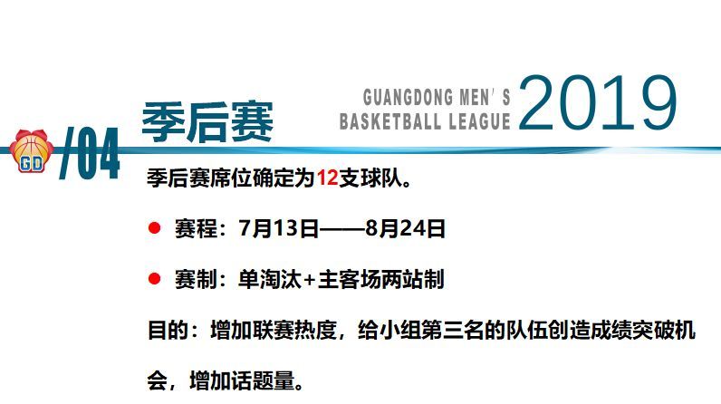 珠江啤酒·2019广东省男子篮球联赛即将重燃战火,本赛季共有20支球队、360名运动员参赛,共有120场正赛以及一场全明星赛。开幕式暨揭幕战将于5月2日晚在顺德大良体育中心举行,由顺德队主场对阵汕头队。