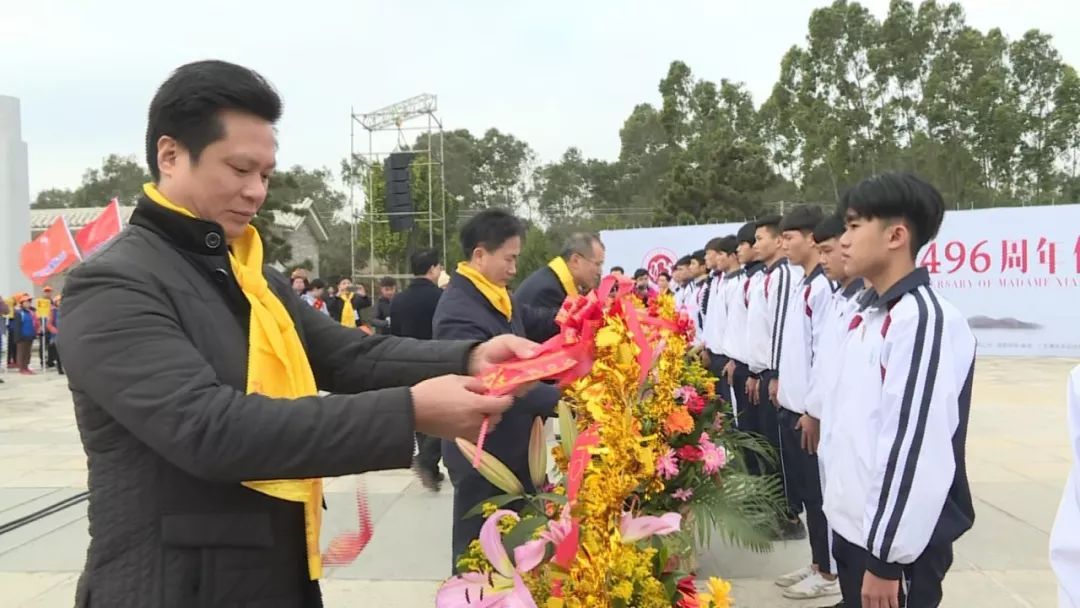 紧接着,滨海新区党工委副书记、管委会主任陈尧、电白区委副书记、区长华翠、区人大常委会主任谢金坚、区政协主席钟林矿、电白区委副书记、政法委书记黄东明、滨海新区党工委委员、管委会副主任杨裕全等领导及各界人士先后向冼夫人敬献花篮。