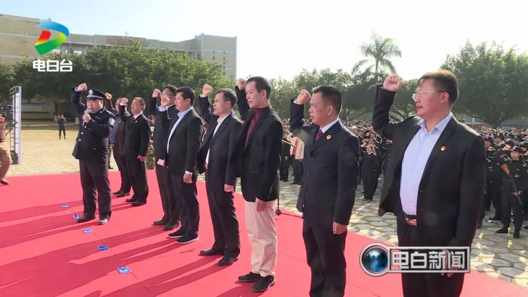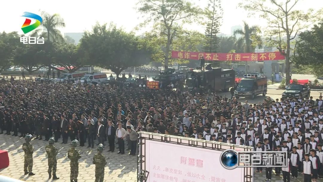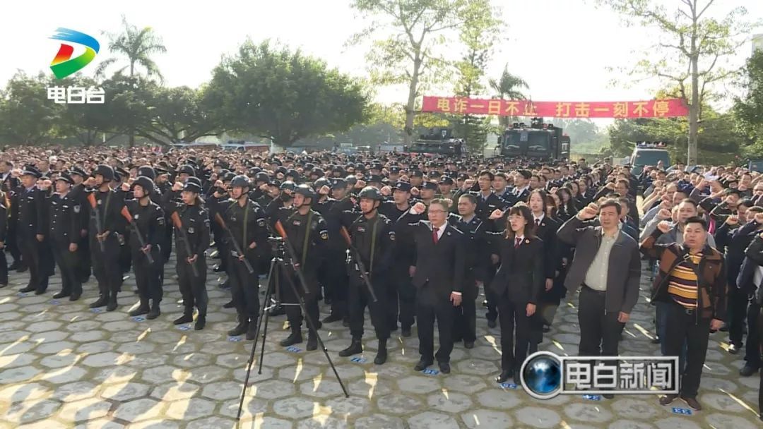 今天上午(1月8日),电白区再次举行打击整治电信诈骗犯罪誓师大会。黄东明、黄小猛、余伟文、龙木兴、姚雄等区四套班子领导成员,“法、检”两长、“公、检、法、司”干警,麻岗、树仔两镇干部、区第八批驻村干部等1600多人一起誓师。