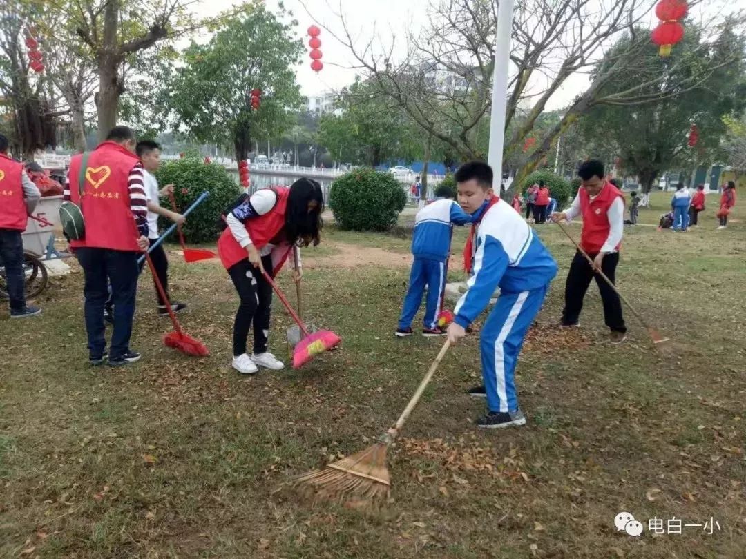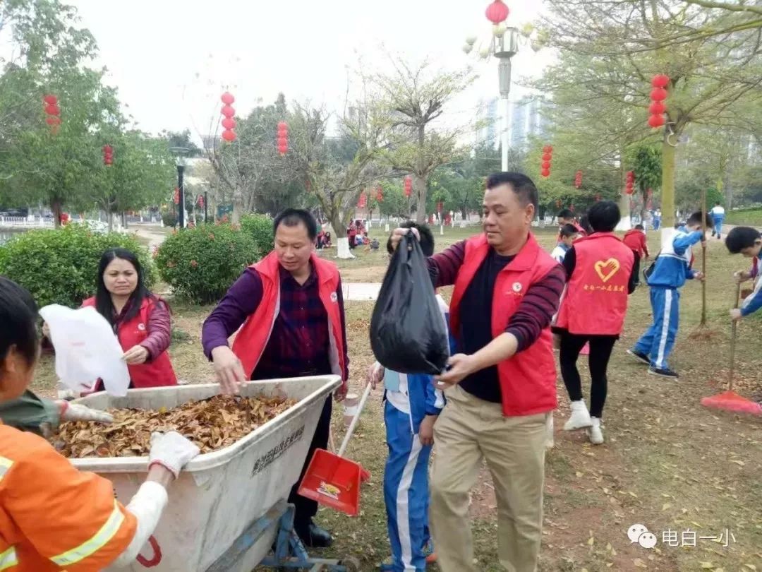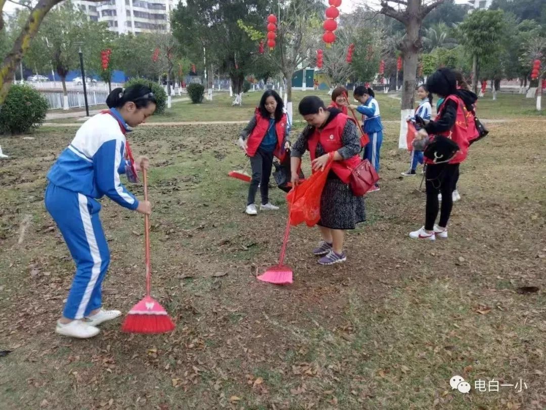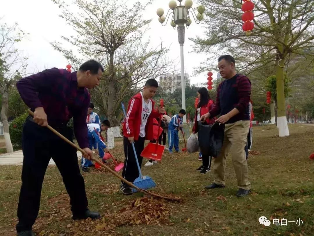 2月23日上午,电白一小积极响应上级号召,组织家长志愿者及学生等100多人,在校园周边及东湖公园,开展“小手拉大手,创卫齐步走”环境卫生大清扫活动,助力全区创卫工作。