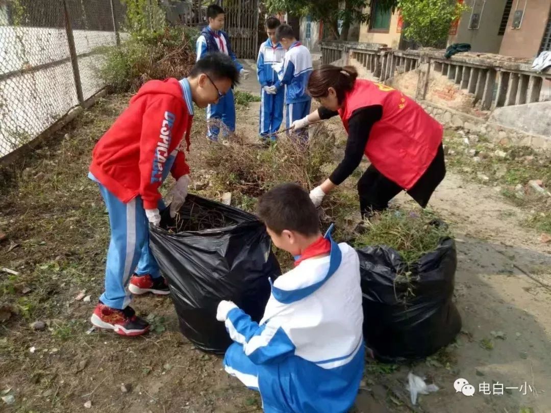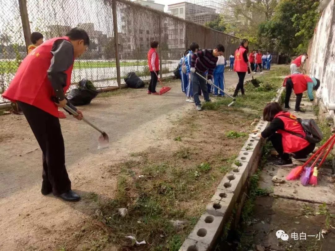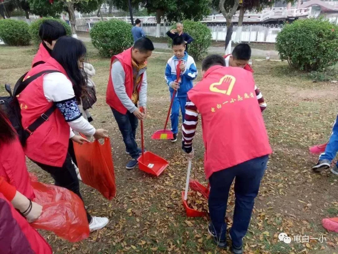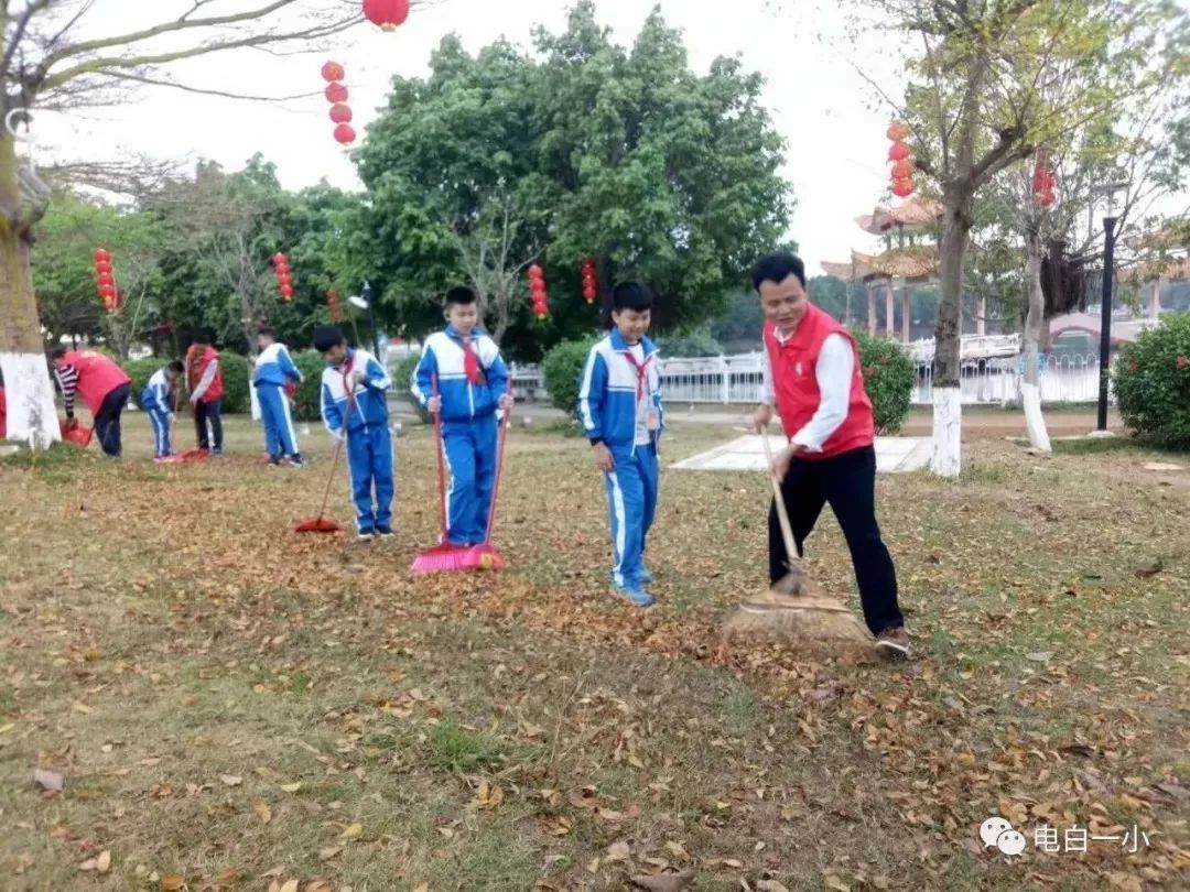 2月23日上午,电白一小积极响应上级号召,组织家长志愿者及学生等100多人,在校园周边及东湖公园,开展“小手拉大手,创卫齐步走”环境卫生大清扫活动,助力全区创卫工作。