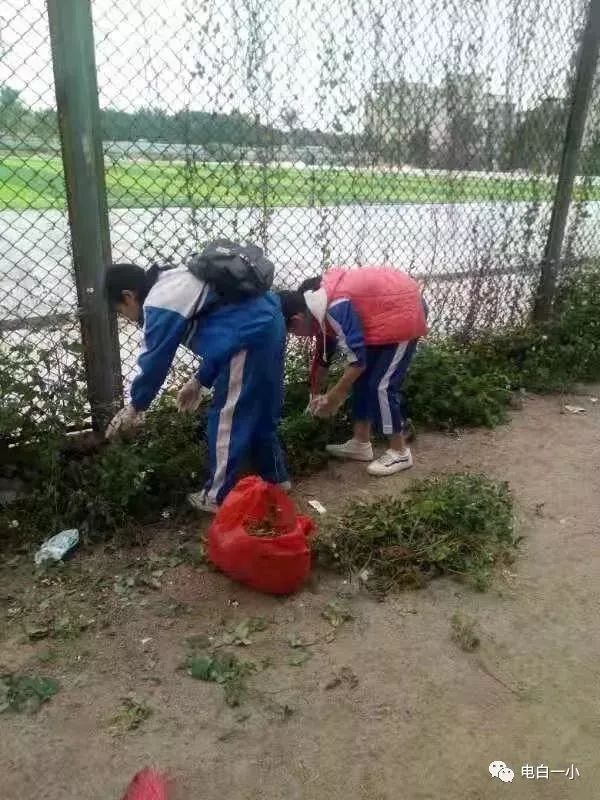 上午9:00,家长志愿者们身穿印有“志愿者”的马甲,学生们佩戴红领巾,手拿清洁工具,在区教育局、学校领导的带领下,高举鲜红的队旗,整齐有序地来到东湖公园“冼夫人广场”及校园周边开展大清扫活动。孩子们在大人的引领下,一个个争先恐后,将杂草、草丛里的烟头、废纸等及时清理,笤帚、锄头,垃圾铲等全部到位,你铲,我锄,他拿垃圾袋装,大家合作默契。